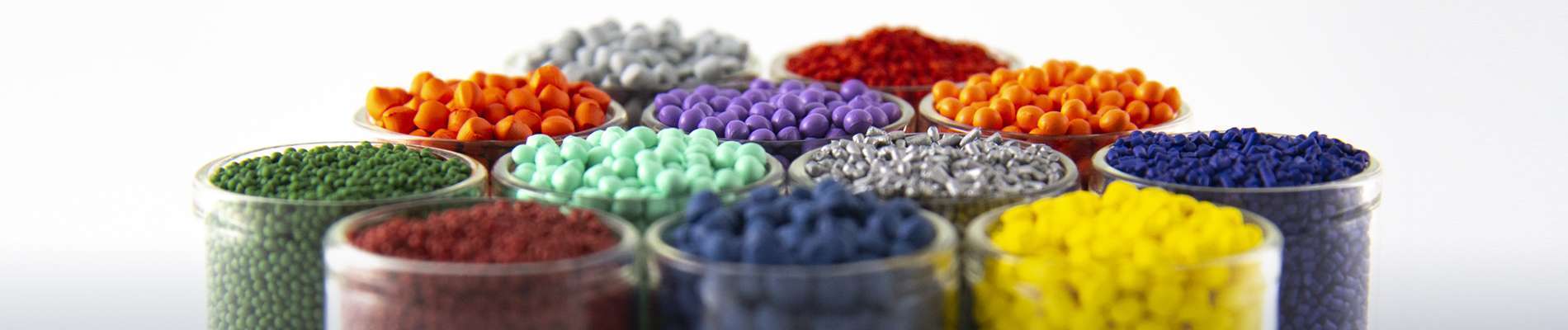 For improving dilution of the colour where the traditional spherical masterbatch does not achieve good colour homogenization. The spherical shape and small size improve the dosage in comparison to the traditional cylindrical granule.